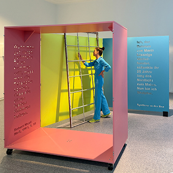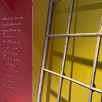 Der Türrahmen der Box trägt die Inschrift eines Zitates aus Musils Hauptwerk,“Der Mann ohne Eigenschaften”: