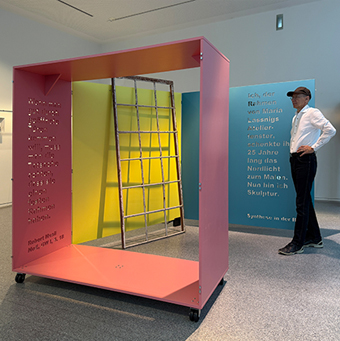 Der Titel der Skulptur spricht in der Ich-Form und lässt den Rahmen direkt zu Wort kommen. Diese „Reflexive Beseelung“