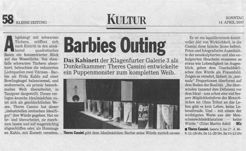 Das Kabinett der Klagenfurter Galerie 3 als Dunkelkammer: Theres Cassini entwickelte ein Puppenmonster zum kompletten Weib. Abgehängt mit schwarzen Tüchern, eröffnet sich