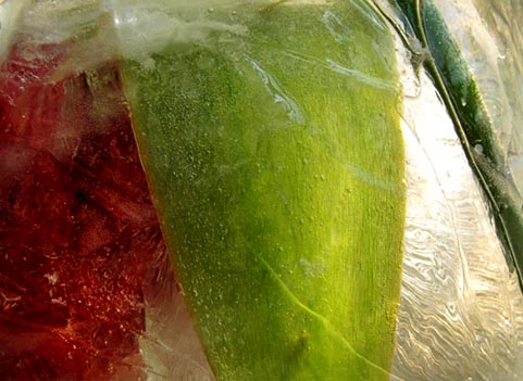 Glühend Eis Objektbild, 2008 - 2012, 59 x 43 x 8 cm, 2 Schichten, Fine Art Print auf Plexiglas, PLEXIGLAS EndLighten gefräst, LED, Metallverbindungen