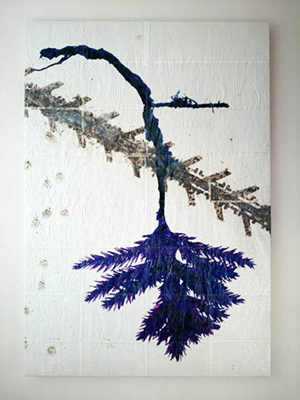 MOOS Climacium Dendroides 2016, Moosfotografie auf Textil gecrasht verleimt, Erde, Holzleim, Keilrahmen 150 x 220 x 7 cm