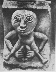 Baubo (sheela-na-gig), 12.Jh., Relief an der Kirche in Kilpeck, Herefordshire, England