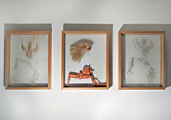 Cassini, Balance Akte, Die Überrollte, Triptychon, 2003 Barbiepuppe, Abdrucke auf Kunststoff, Objektrahmen 137 x 30 cm