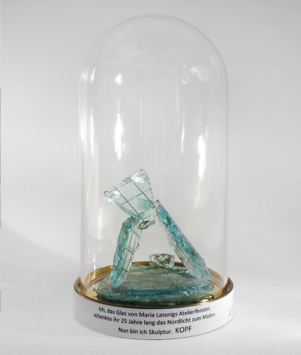 Glasskulpturen, die Lassnigs Bildtitel aufgreifen.