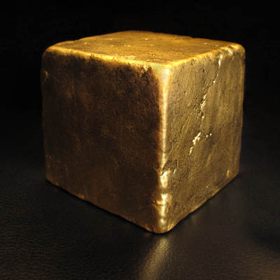 Pflastersten, 2011, blattvergoldet, 8 x 8 x 8 cm