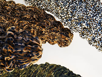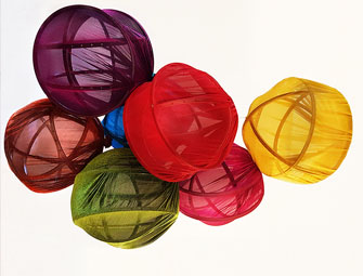URKÖRPER SCHWARM, 2020, 22-teilig, Alu-Fahrradfelgen, Textilien , D 75 cm, Installationsgröße variabel