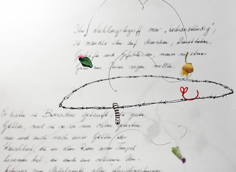 8-teilig, Textilien, Metalldraht, Kunststoff, Stacheldraht, Metallständer, Papier