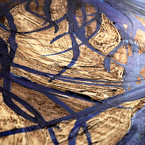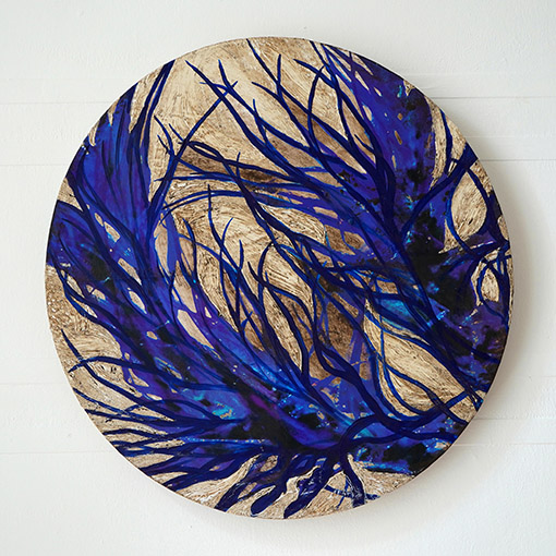 MOOS Moos-Tondi 02 2016, Moosfotografie auf Textil verleimt, Acrylfarbe, Holzleim, Erde, Radfelge, D 57cm